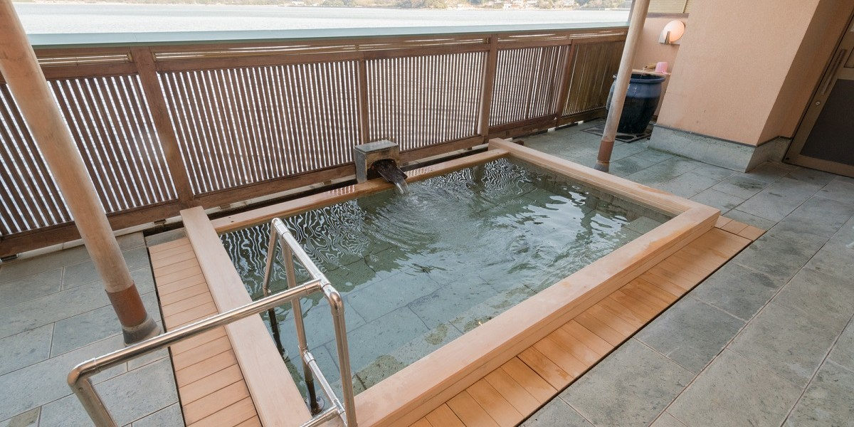在温泉中,您可以俯瞰猪鼻湖 (猪鼻湖 奥滨名湖),并且每个季节都可以从与湖面相同的角度欣赏到各种壮丽的景色。此外,在晴天时,您可以一边浸泡在浴缸里,一边观看从对岸的升起的太阳。在与滨名湖表面相同的角度欣赏风景的同时,放松身心。