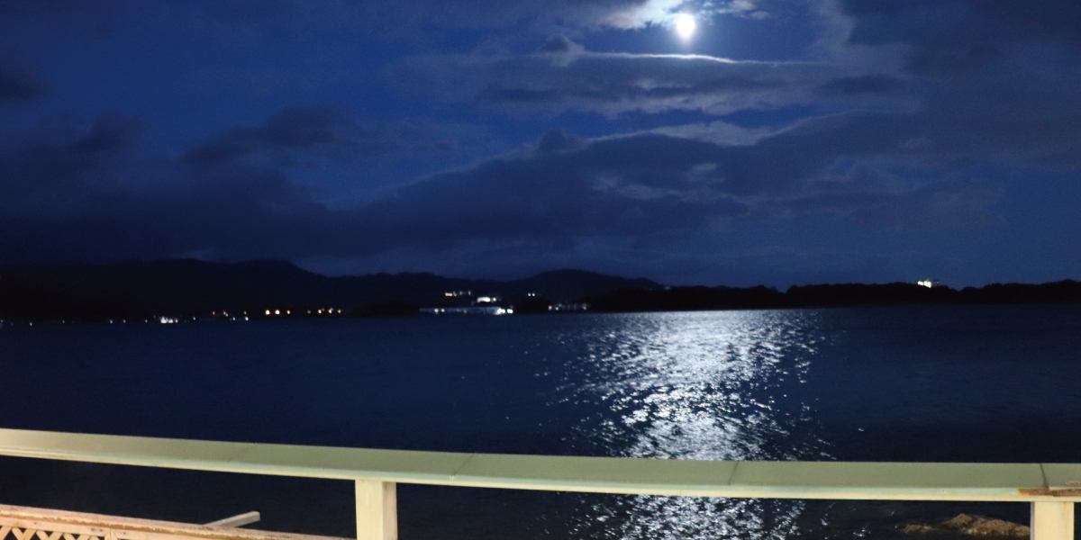 月亮路上唯一的滨名湖壮丽景色倒映在湖面上